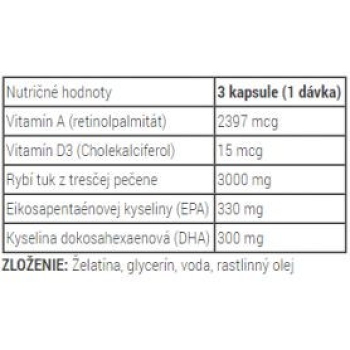 Omega-3 mastné kyseliny (mezi hlavní složky patří kyselina eikosapentaenová [EPA] a kyselina dokosahexaenová [DHA]).